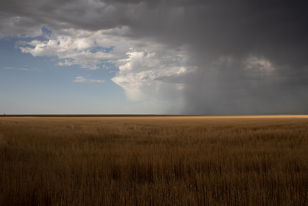 Drought-damaged wheat with storm clouds, just east of Elkhart, Kansas, July 2011