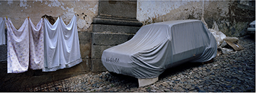 Weighting tarp with old tires, Brookover Ranch Feed Yard, May 2012